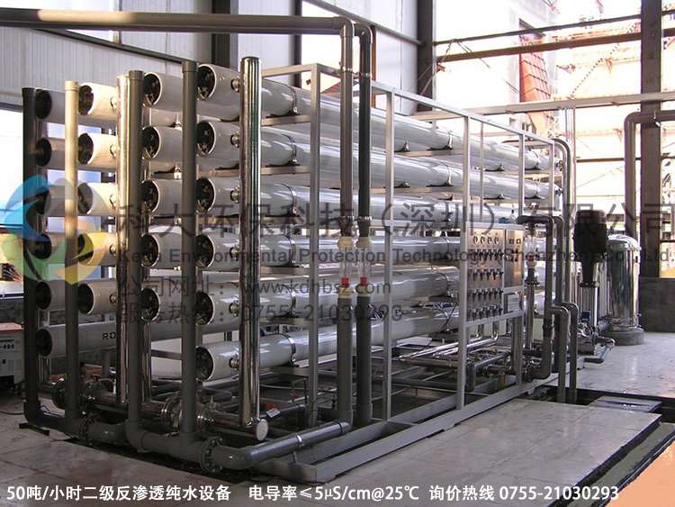 電導率≤5µS/cm (常溫下25°C) 預處理+二級反滲透(RO)