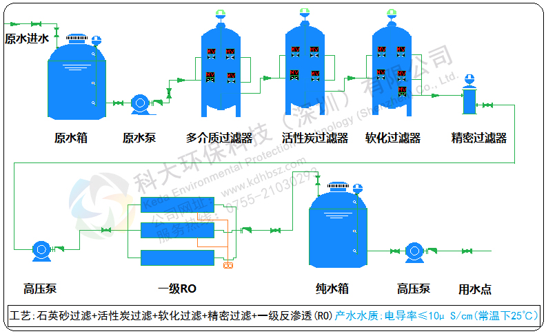 三、科大環(huán)保_一級反滲透純水設(shè)備設(shè)計工藝: